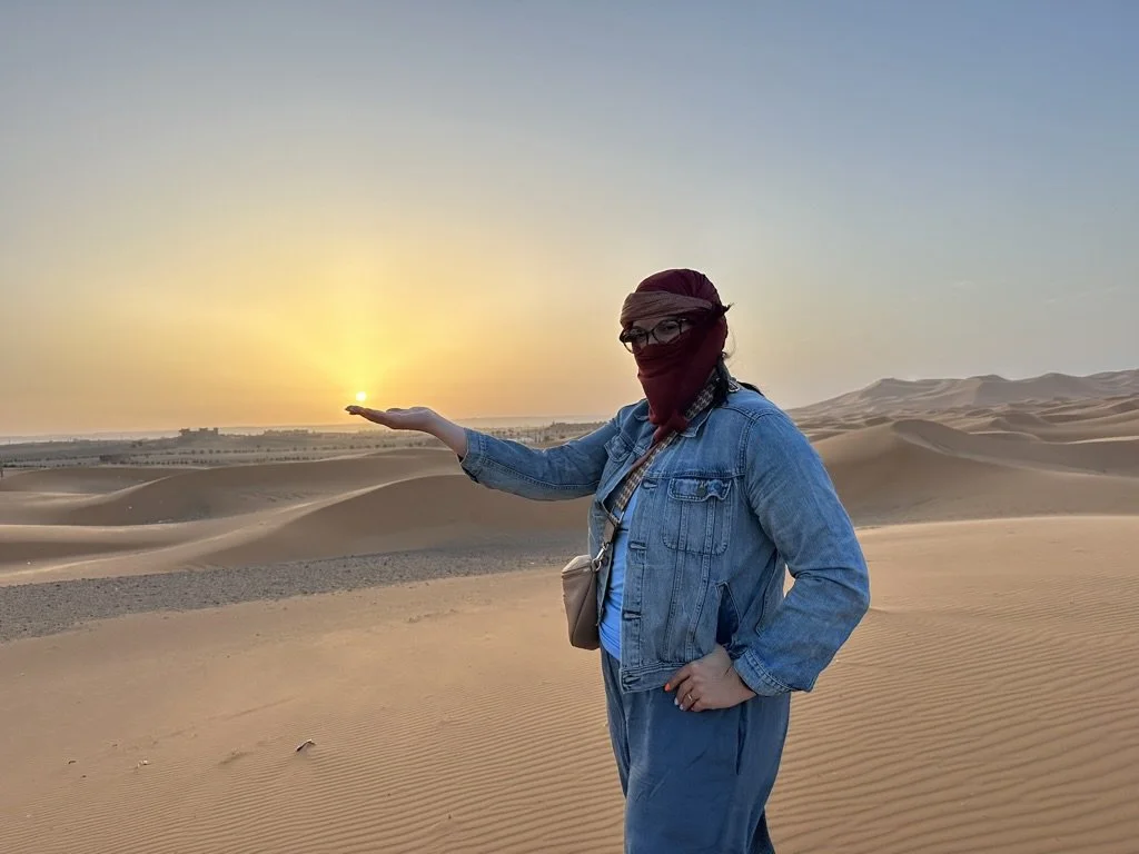 Desert sunrises in Merzouga—tea in hand, dunes glowing gold.
