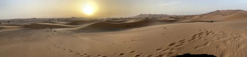 I woke before sunrise, while everyone else was still asleep. I slipped outside into the cool, silent desert, climbed a dune, and watched the first pale light creep over the horizon. The sky shifted from deep indigo to rose gold, painting the sand in soft, delicate hues. It felt like I’d wandered into a movie—a scene entirely my own.